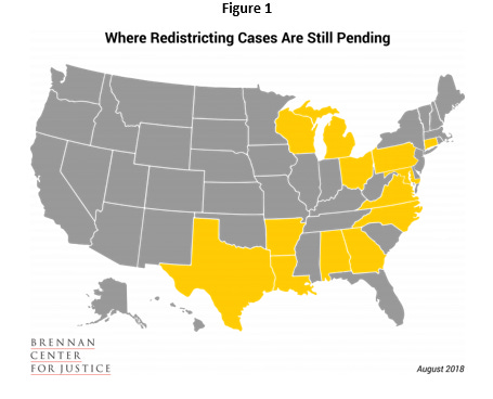 It is hardly a coincidence that these states are also involved in pending lawsuits — accused of partisan gerrymandering. The three are not the only ones having to defend their divisions of the political pie. (See Figure 1)
